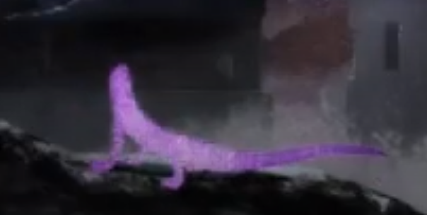 Following this moment, we witness a purple salamander cry and transform into a purple jumble, resembling Homura's previous surreal image. "Homura" means "flame" in Japanese, and salamanders, being connected to fire and capable of withstanding it, symbolize Homura herself.