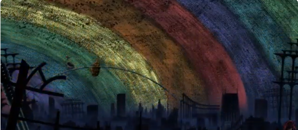 A feeling of peace is evoked by the hues of the first scene and natural light. A rainbow sky and dark, stunning colors create a bizarre environment in the second Homulilli. Yoke's feelings are reflected in these hue shifts, which also enhance the visual story.
