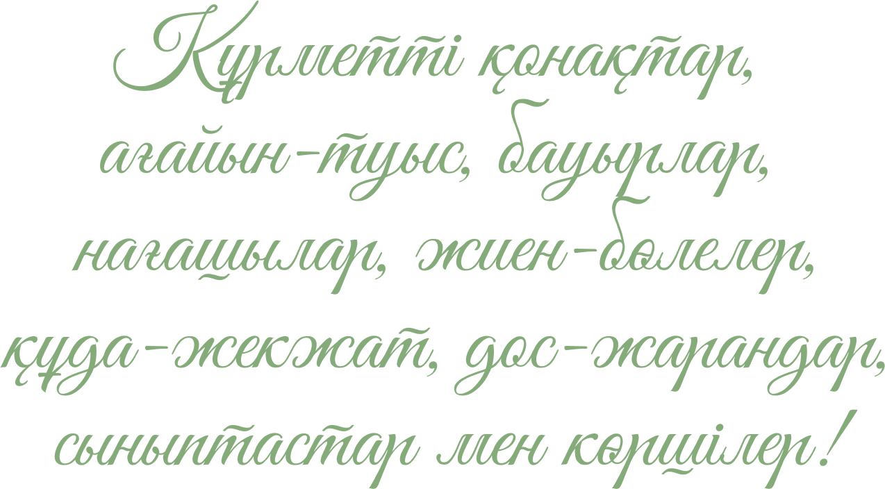 Сіздерді ұлымыз Еркебұлан мен келініміз Динараның үйлену тойына шақырамыз!