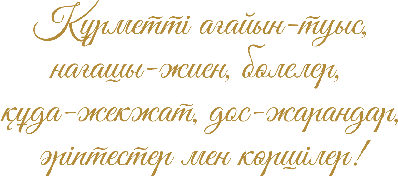 Сіз(дер)ді аяулы қызымыз Маржанның ұзатылу тойына арналған салтанатты дастарханымыздың қадірлі қонағы болуға шақырамыз!
