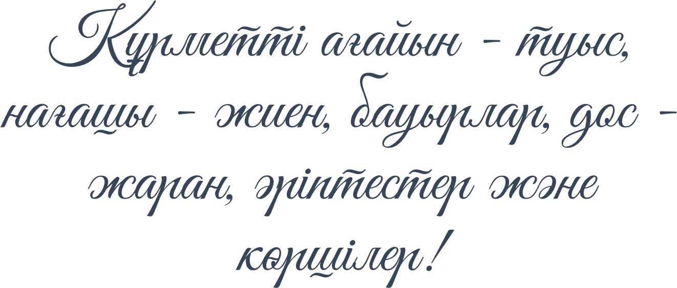 Сіздерді ұлымыз Мейірдің сүндет тойына арналған ақ дастарханымыздың қадірлі қонағы болуға шақырамыз!